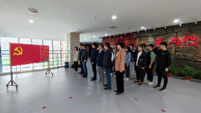 随后,在将军路校区党工委书记邬沛雄的领誓下,全体党员面向党旗庄严宣誓,以革命先烈的英勇事迹,鞭策和激励自身时刻铭记入党誓词,不忘初心、牢记使命,砥砺奋进。